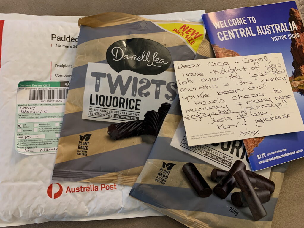 May 21, 2020 – A delightful care package arrives from friends Ken and Fiona in Australia.