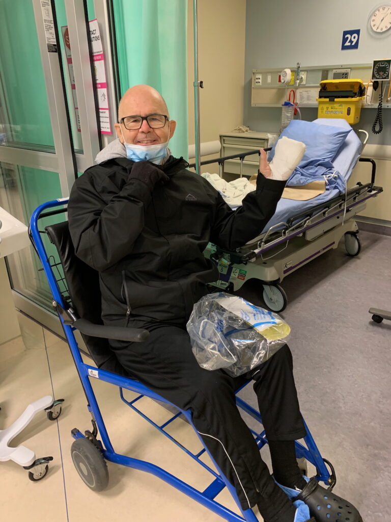 October 1, 2020 – My second surgery. The left hand. I get a nurse to take the picture with my phone.