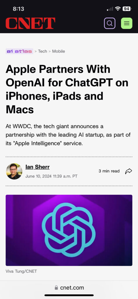 9. Apple has just entered into an agreement to have ChatGPT integrated on all its newer devices.