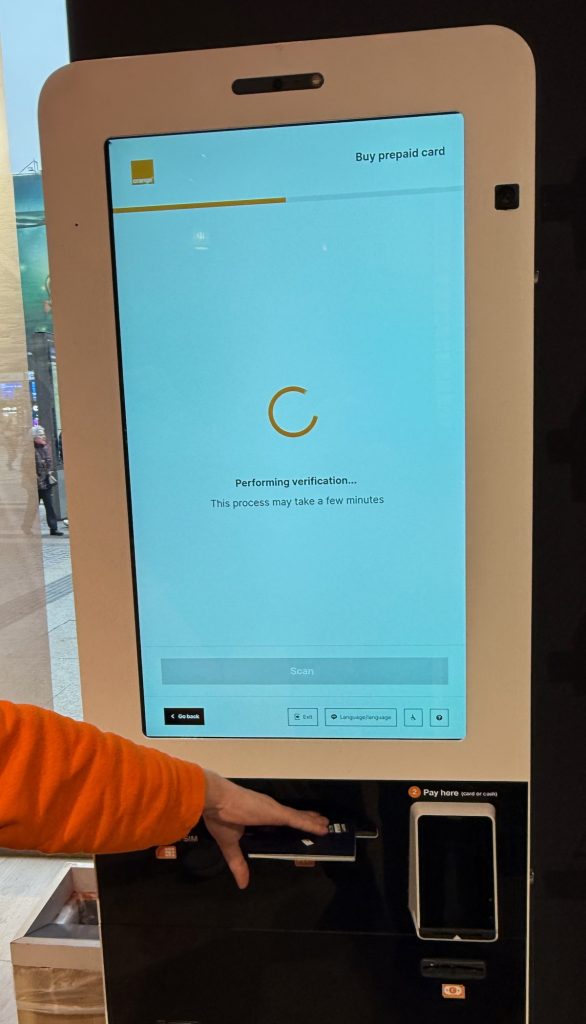 8. After you have decided on what plan you want, you scan your passport… here the clerk is scanning my passport… and then you tap to pay with a credit card. Oh, so easy.
