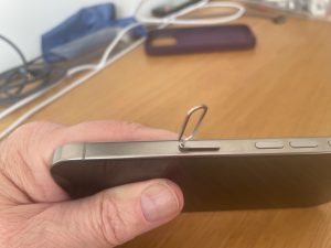 10. The clerk snaps out the Sim and installs it in your phone. Now, I did not take any photos of the clerk installing the SIM, so I recreated the process in our hotel room to show you how easily it is done. *No iPhones were harmed in the making of the SIM installation re-creation.