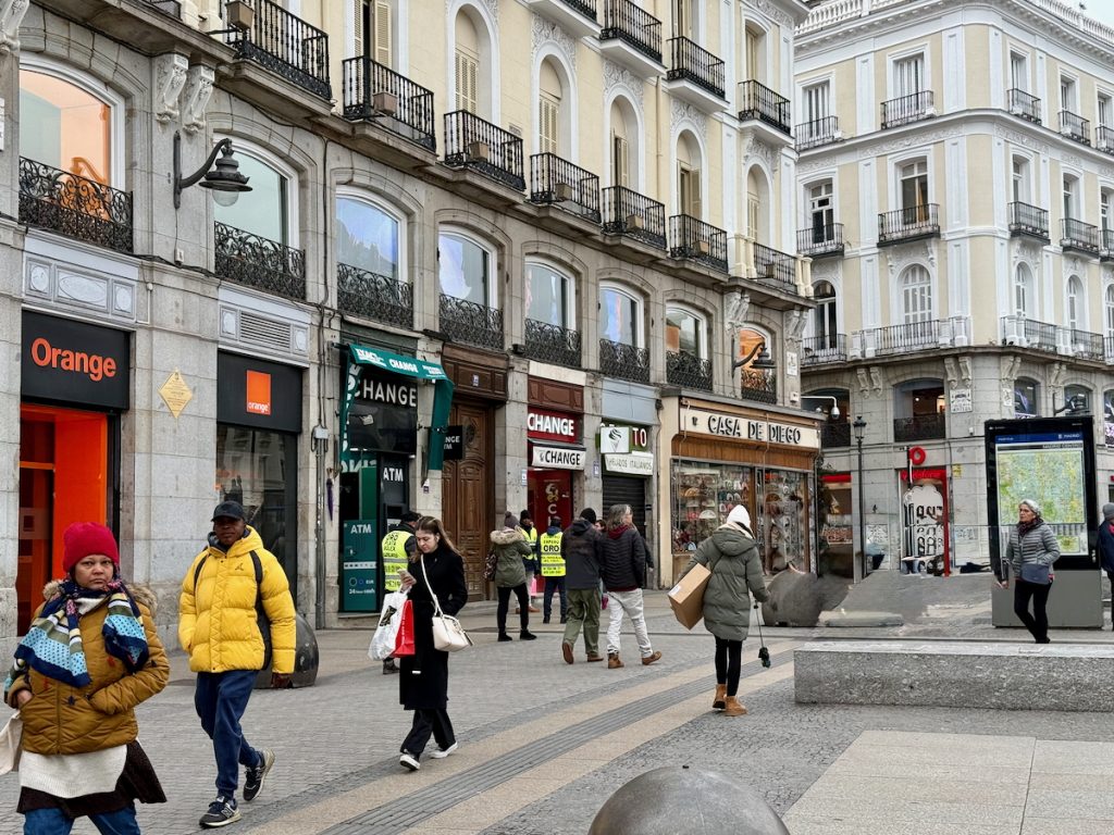 One final photo just for fun. I wanted you to see that just down the block from the Orange store in which we get our SIMs in Madrid, there is now a Vodafone outlet as well. But! What I really wanted you to see was that on this day it was nine degrees in Madrid. If it were that temperature at home, I probably would’ve been out golfing in my shorts. These locals, on the other hand, are looking like they are prepared for an outing to the Arctic! Nine degrees is a cold day in Madrid in January. 🙂