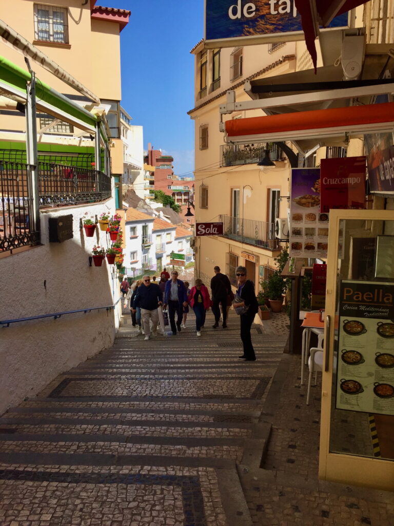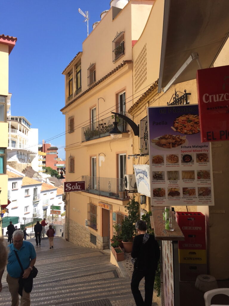 This initiated a bit of a communication back-and-forth between Ross and me while I was in Spain and after I got home. It also made me think… Duh… Torremolinos is about a short 20 kilometers down the road. I need to get down there and check out my old haunts. So, on a nice day towards the end of our stay in 2019, I convinced the Love-goddess to travel with me on the local train to visit Torremolinos once again and listen to my reminiscing ramblings.