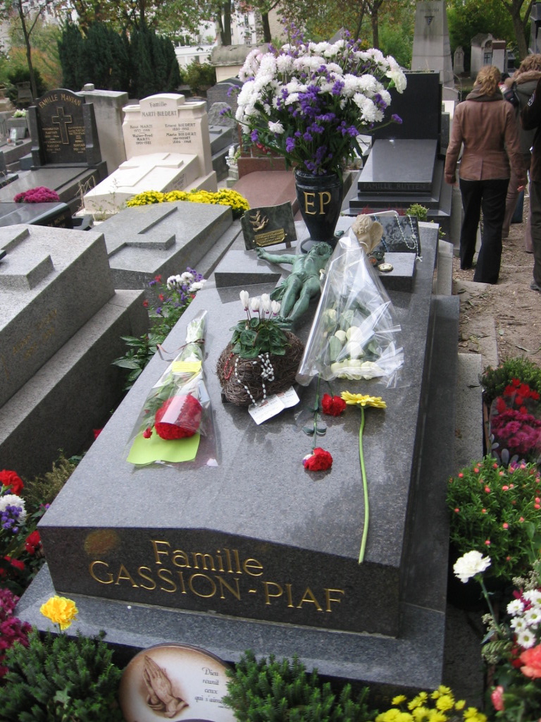 This might be the most famous French citizen buried at Père Lachaise, the singer Édith Piaf. Again, lots of flowers and tokens.