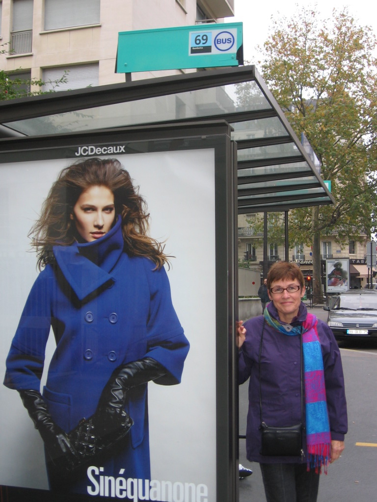 Here we have two French models waiting for bus 69 🙂 This shot was taken the very first time we used this particular bus route. This stop was close by to where we were staying in the Rue Cler area, so easy-peasy getting to Père Lachaise. You can read a brief overview about Rue Cler in the Paris Perfect article cited above.