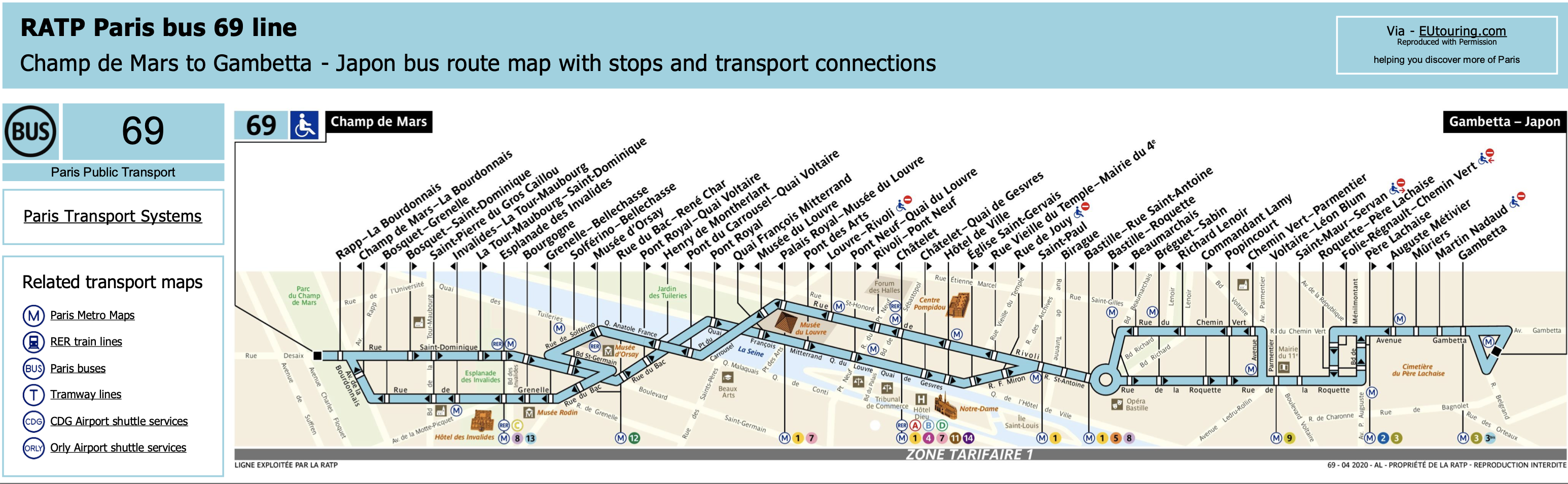 Yes, I am. BUT not about just any cemetery. I am going to write about one of the most famous cemeteries in the world, “Cimetière du Père Lachaise”. AND, I’m going to tell you about one of the most important bus routes in Paris, especially for travellers, route 69 … easy to remember. 🙂