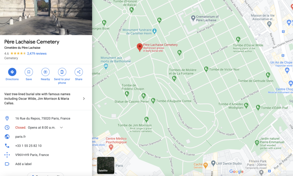 The photo presentation begins with three different Maps. I will mention different options for map usage as I speak about these, but here is a link to a printable map of the famous gravesites that you could print out at home and take with you. All of the photos were taken at the end of October in 2007. https://www.api-site.paris.fr/paris/public/2018%2F9%2FCPLMapEN.pdf.