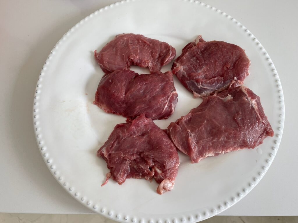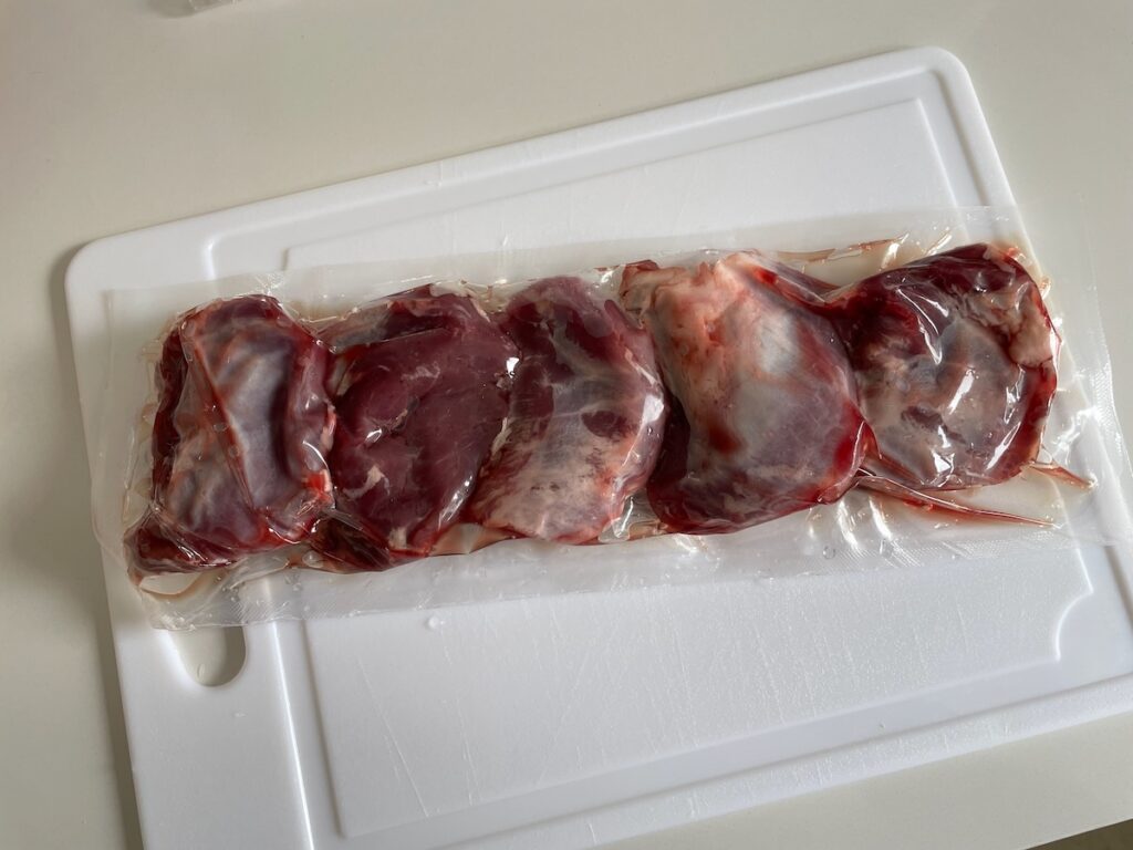Task number one, get rid of all the silver skin – a very onerous task with a dull knife. That’s a grimace, not a smile. 🙂