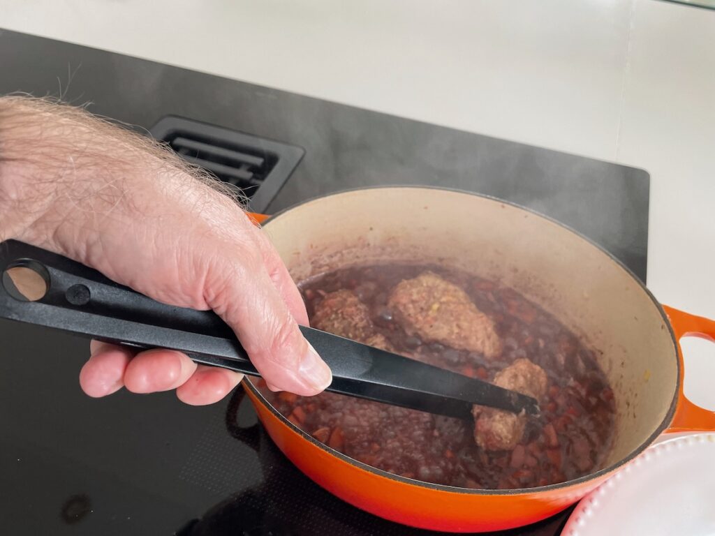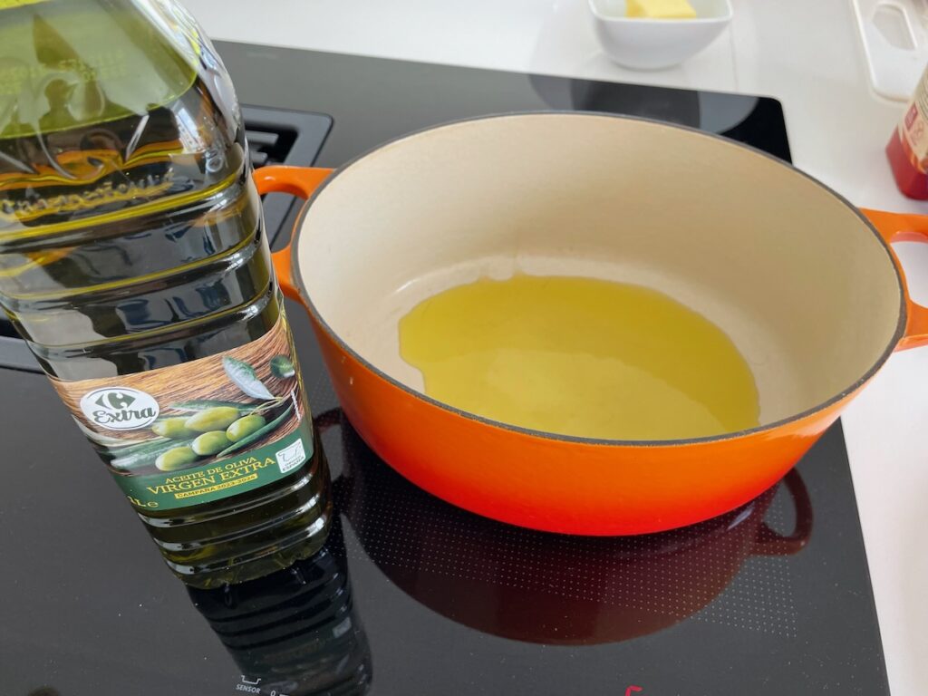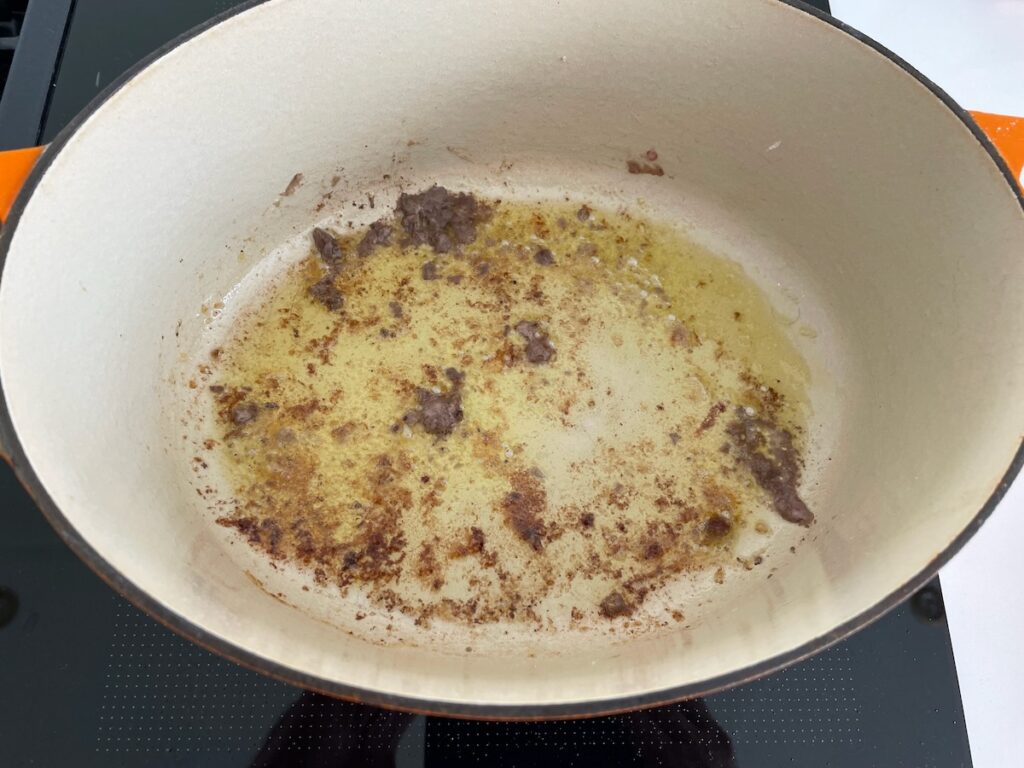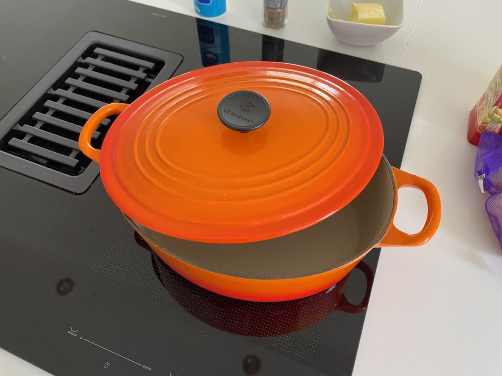 Fortunately, the place we rented had this lovely Le Creuset Dutch oven – the perfect vessel in which to make this dish.