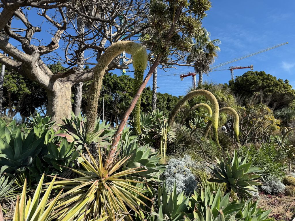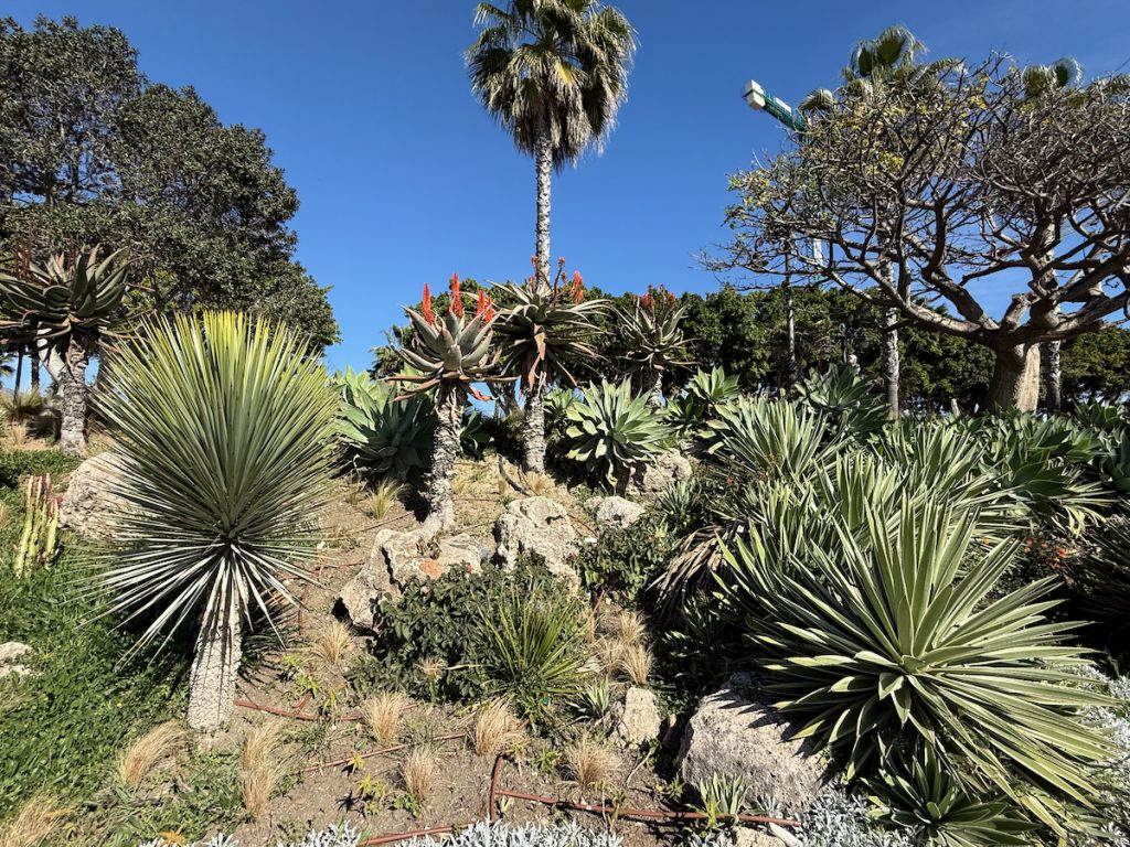 11. As we get closer toward our destination, the roadway begins to head uphill while the Paseo continues flat as it runs along the Mediterranean. In the median between the two are these lovely plantings.